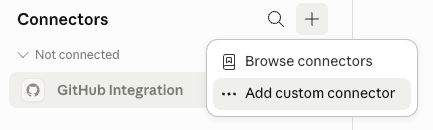 Individual supported plans: Open Settings -> Connectors, click +, then click Add custom connector.