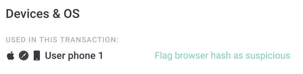 If flagging is turned on, you can flag the phone number, email address, IP address and the browser hash from the Transaction Details page by clicking the “Flag as suspicious” label under the value.